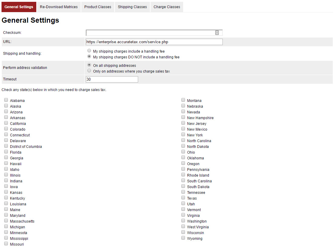 Our sales tax module is installed and used instead of State Based Sales Tax. The module calls the AccurateTax servers at appropriate points during the customer’s checkout process, to validate and scrub the shipping address, and to return any applicable sales tax amounts.