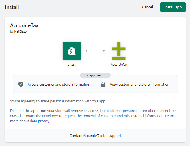 Once you have this information, proceed with the steps below to install and then configure AccurateTax in your Shopify store.